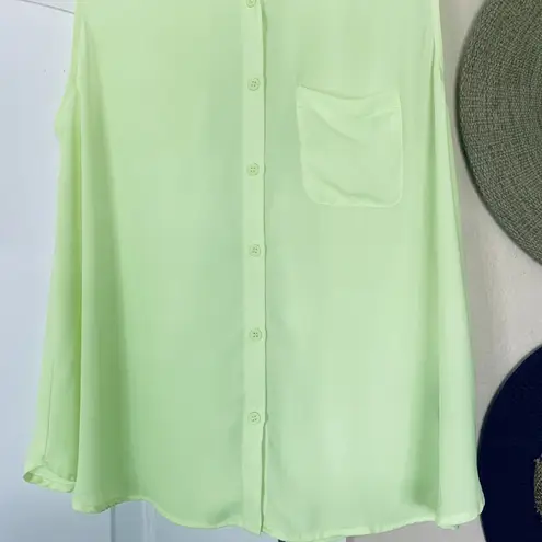 Forever 21 Y2K Neon Highlighter Yellow Sheer Sleeveless Button-Up Dressy Blouse Size: L Brand: Forev... Show more