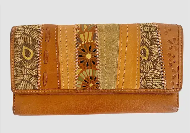 🌸 Boho Patchwork Leather Wallet 🌸 ༓ brown tan suede & leather material ༓ floral flower leaf detai... Show more