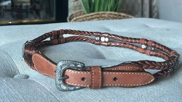 Fossil Brown Braided Leather Silver Detailed Belt Size Medium Genuine Leather BT2049 100% Authent... Show more