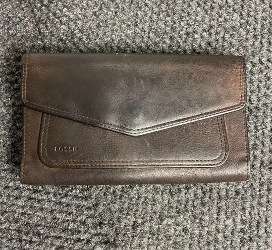 Fossil Brown Pebbled Leather Tri-Fold Bill Length Snap Close Wallet -3 Full Length Bill Pockets -8... Show more