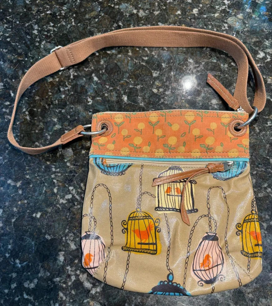 FOSSIL Coated Canvas KEYPER‎ Birdcage Pattern Brown, Apricot Shoulder Bag S Tan - $27 - From ivette