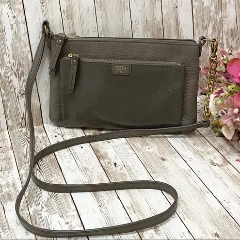 Rare FOSSIL Shadow (Gray/Olive) Cowhide & patent leather Double Zip Crossbody Bag. Pre-owned. May ha... Show more