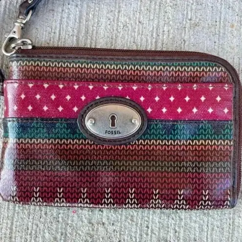 Fossil keyper wristlet Coated Canvas Geometric Pattern Brown leather trim Zip closure Great for trav... Show more