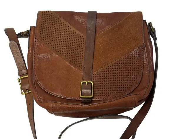 Fossil Satchel Crossbody Bag Purse Flap Buckle Closure Cow Hide Leather Brown - $30 - From Alexis