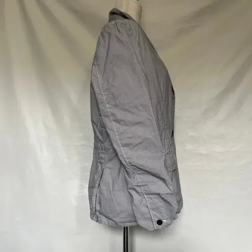 Fossil Gray White Stripe Lightweight Casual Bazer with Ruched Sleeve