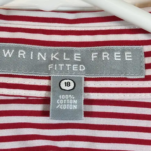Foxcroft Red White Stripe Wrinkle Free Fitted Button Down Shirt Size 18 EUC - $39 - From Vir