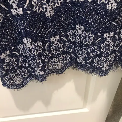 Foxiedox Anthropologie daleyza Lace Square Neck Midi dress Navy Blue Size Small. Lace appliqué on ba... Show more
