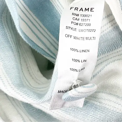 FRAME 100% Linen Blue Off White Striped Single Button Long Sleeves Blazer, Size 8. Faint marks on cu... Show more