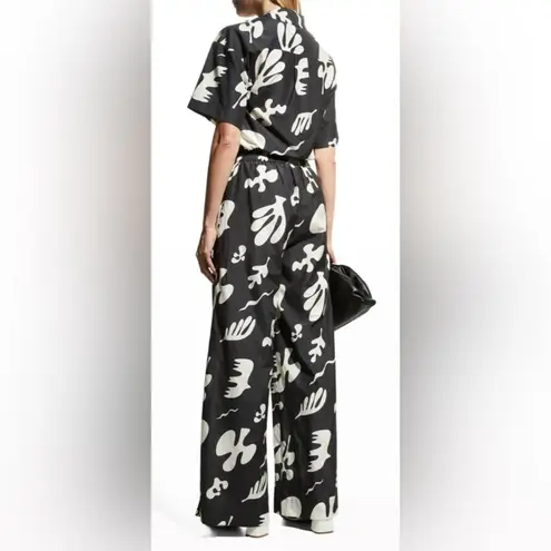 FRAME Cropped Twist Front Shirt with side zipper and front button closure and collared. Black & Whit... Show more