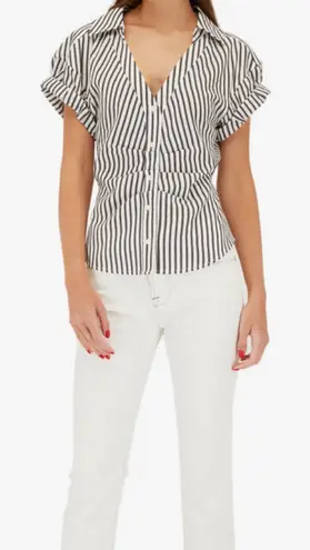 46% viscose, 25% cotton, 19% linen machine wash spread collar front button placket rolled cuffs ruc... Show more