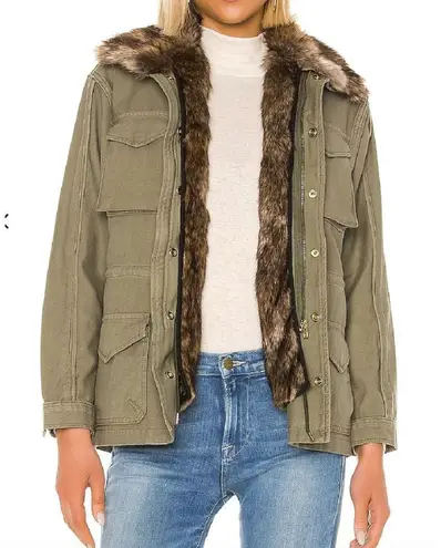 FRAME Faux Fur Lined Military Style Jacket Sz Small Military green jacket with removable faux fur li... Show more