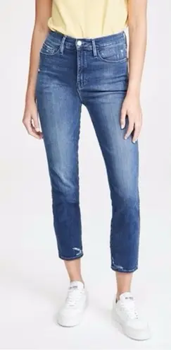 These high rise slim fit jeans are in good condition with no flaws! Medium wash. Distressing near th... Show more