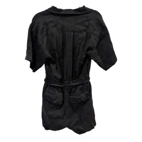 A slender tie belt whips around the waist of this poised twill romper. Excellent condition! Size: S... Show more