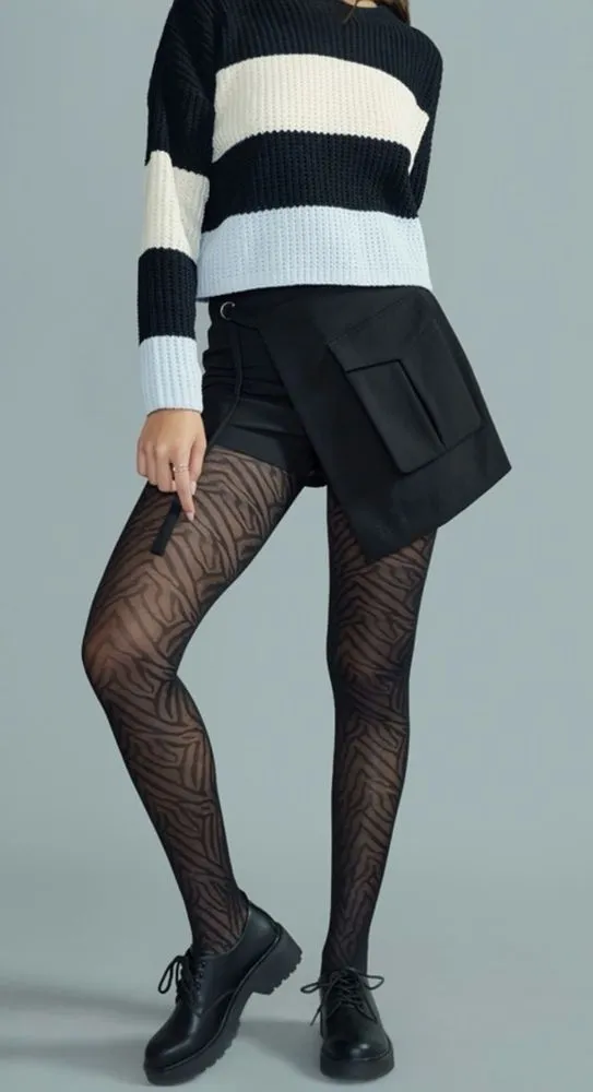 Francesca's Eliza‎ Black Sheer Tiger Print Tights Chic Patterned Size S/M - $25 New With Tags - From Veronica
