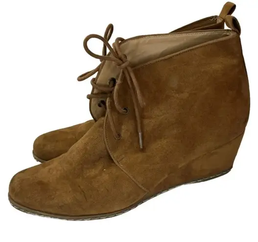 Brown suede lace up wedge ankle boots Color goes with just about anything! Very easy 2 inch wedge... Show more