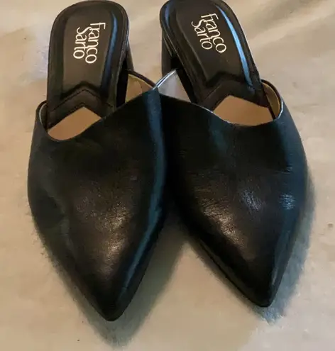 Experience the elegance of Franco Sarto with these black leather mules, featuring a pointed toe and... Show more