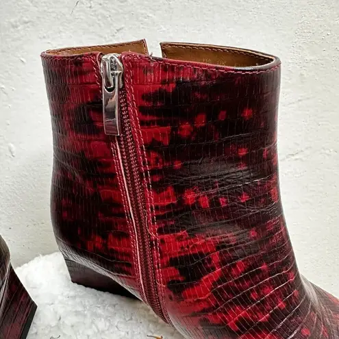 Elevate your shoe game with these stunning Franco Sarto booties in a fierce red animal print. The po... Show more
