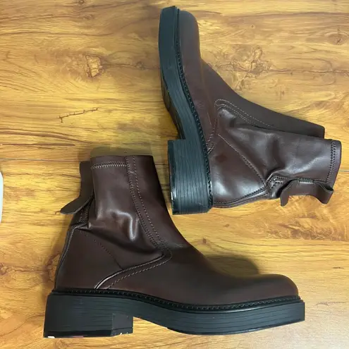 Stylish and versatile, these brown leather ankle boots offer a blend of fashion and function. The sl... Show more