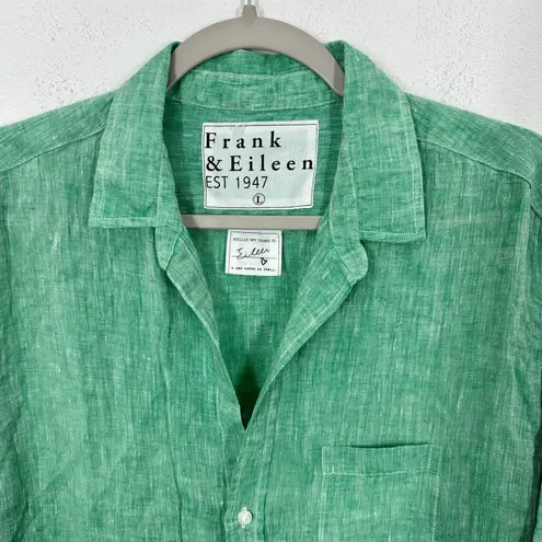 Pre-Owned in Great Condition Approximate Measurements: Length: 29.5" Pit-Pit: 24" Discover effortless style with this vibrant green linen shirt from Frank and Eileen. Its breathable fabric drapes beautifully, offering a relaxed yet polished silhouette perfect for warm days. The classic button-down design features a comfortable collar and chest pocket, while the distinctive Eileen fit ensures a flattering look. Experience the luxurious feel of Italian woven linen, crafted with care in Mexico. Ideal for a chic brunch, a seaside getaway, or a casual day out.