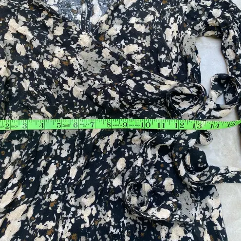 Revolve, all the right ruffles romper, raven combo colored, splotchy pattern, 3/4 sleeve with ruffle... Show more