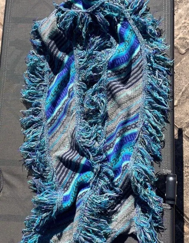 Free people Fringy chunky scarf Blue and grey Approx 5.5 feet long