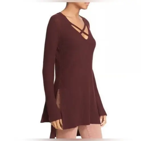 Andi criss cross mocha shade tunic sweater. Lightweight, slit sides and cuffs, ribbed hem. 19” unde... Show more