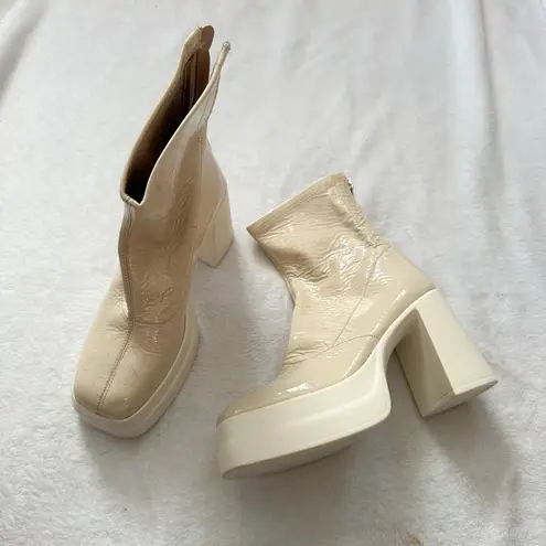 Super cute pair of white faux leather Double Stack Platform boots from Free People. Super fun 60's/7... Show more