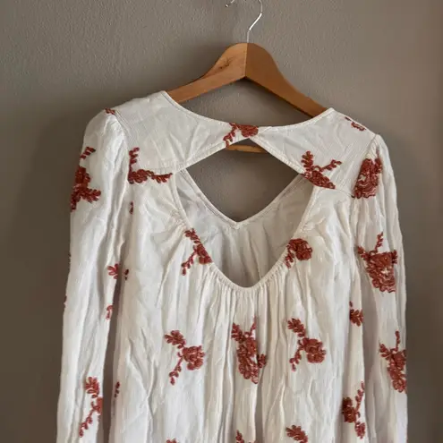 Emma Embroidered/Printed Tunic/Mini Dress In Ivory with rust floral embroidery. Rounded V neckline.... Show more