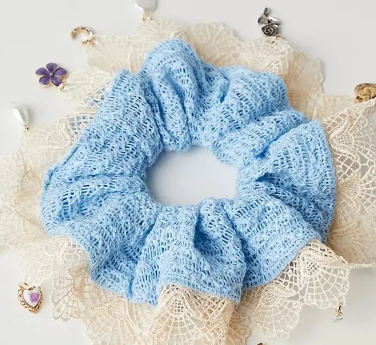 Brand new lace trimmed hair scrunchies in blue 、Perfect for adding a touch of elegance to your hair... Show more