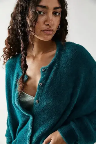 FREE PEOPLE FP ONE WYATT CARDI SOFT FUZZY BUTTON FRONT CARDIGAN TEAL Size XS BRAND NEW WITH OUT TA... Show more