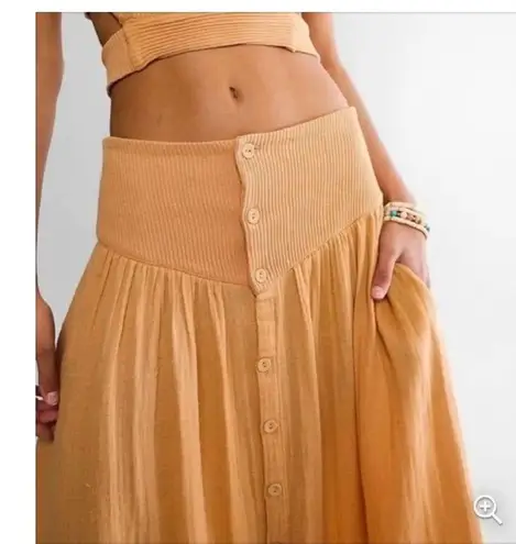 NWOT Color: Pastry Shell Beautiful gauze skirt with thick knit waistband. Front buttons run 3/4 o... Show more