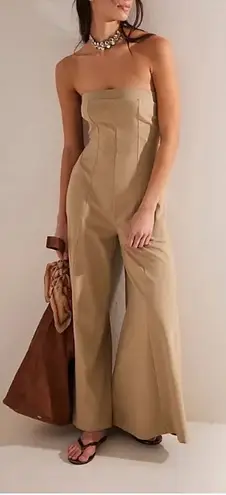 Free People Kamora strapless one-piece with flared wide leg and back cut out. In “treehouse” colorwa... Show more