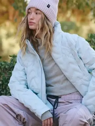 Stylish light blue puffer jacket. Cozy and warm. Perfect for chilly days. New with tags Primaloft