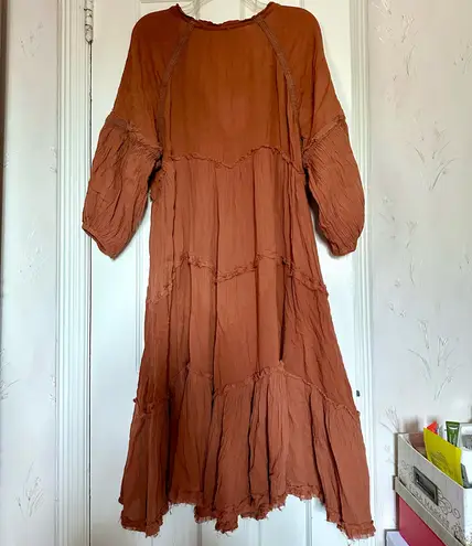 ❣️Updated Listing❣️ Lightweight and flowy boho-inspired long dress features raw edges and crochet t... Show more