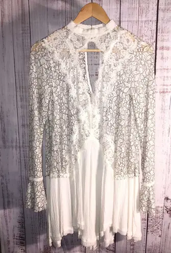 NWOT $124 Free People Tell Tale cut out lace tunic dress top blouse- Long waterfall sleeve, mock ne... Show more
