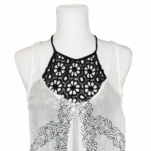 Free People Two-Piece Halter & Overlay Linen Dress Set XS Black White Boho Pre-Owned Condition. Th... Show more