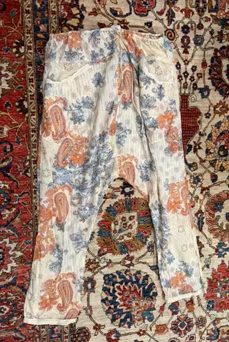 Bohemian Free People harem-style pants featuring an allover paisley and floral print in soft cream w... Show more