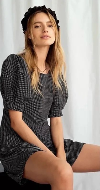 Stretchy- Step out in style with this elegant black polka dot dress. Perfect for any occasion, this... Show more