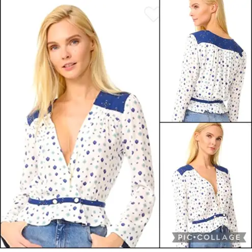 Free People Mixed media blue geo print blouse in women's size small. Good used condition. Chic blous... Show more