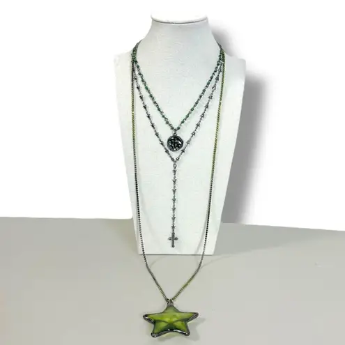 Free People Starlight Starlight Long Layered Necklace In Hematite Green New No Tags Details Sty... Show more