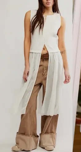 Ribbed on top and sheer on the bottom Front button closure Jewel neck Sleeveless Perfect for layering Excellent preowned condition ▫️Armpit to armpit-19” ▫️Length-46” Measurements are approximate bohemian, fairycore, ethereal, romantic, coquette, cottagecore, soft girl, sheer layers, flowy, gauzy, angelic, whimsical, coastal, dreamy, balletcore