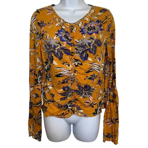 Capture bohemian spirit in this effortlessly chic top. A delightful floral pattern dances across a b... Show more