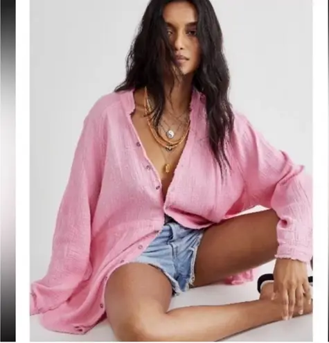 Stylish and comfortable pink button-up top perfect for any occasion. Features a relaxed fit and eleg... Show more