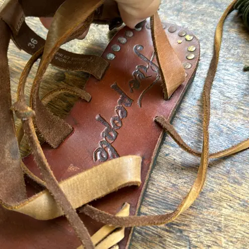 rare FREE PEOPLE WILLOW Gladiator Safari Lace Up Boho Flat Leather Sandal 6
