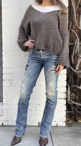 Y2k distressed edgy low rise denim jeans / fit like a sz 25 - 30x33 - rise 7.5 in the