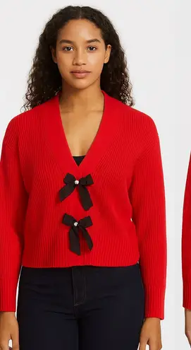 Chic red sweater featuring elegant bow accents. Perfect for adding a pop of color to your wardrobe.