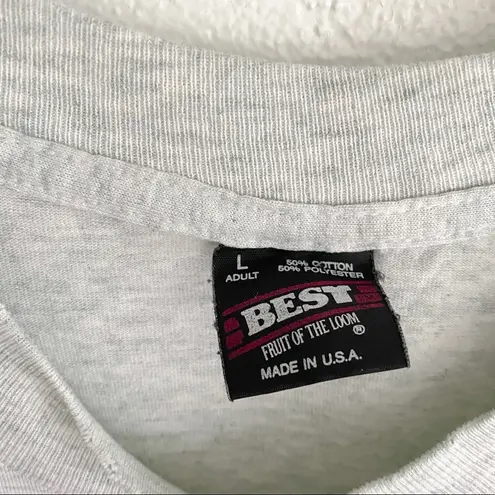 Grey soft Crewneck tee from 90s engine show event. Some small stains throughout. Small holes on neck... Show more