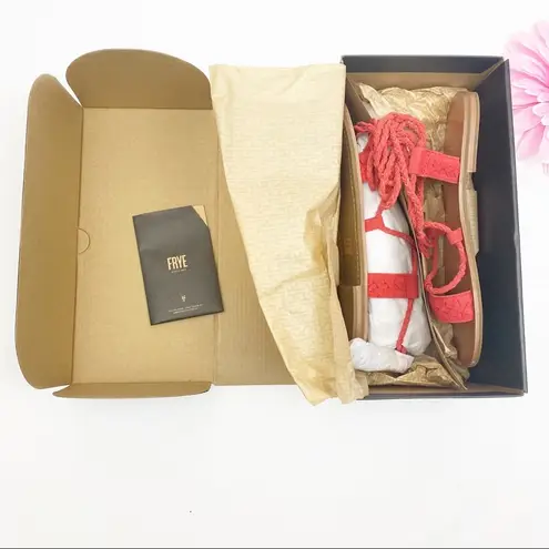 New In Box Frye Ruth Leather Suede Whipstich Gladiator Ankle Tie Wrap Sandals Flats: Red Coral. Size... Show more