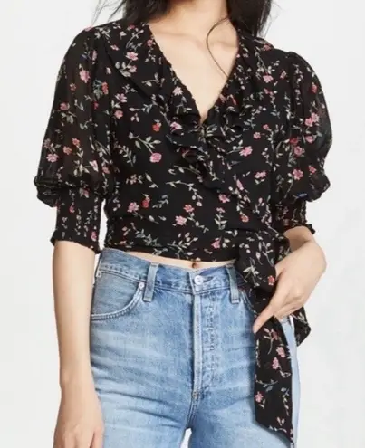 Ganni 38 US M Printed Georgette Floral Wrap ruffle Blouse Top Approx Measurements Length 19'' Armpi... Show more