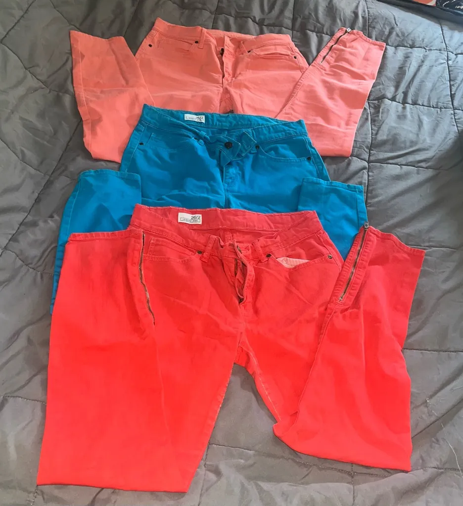 Gap leggings jeans bundle of 3. Color: turquoise blue, orange ,red Midrise. Skinny leg and hips. In... Show more